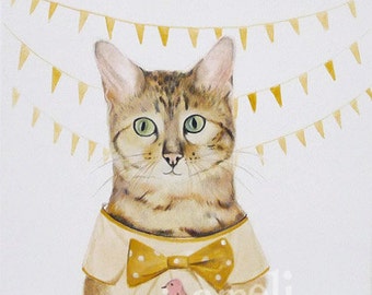 Nursery Art for Kids Room Tabby cat with Bird cat print cat decor cat picture Wall Art for Baby Girl Room nursery decor tabby cat painting