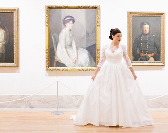 Wedding Dress With Sleeves, Long Sleeves, Elegant, Boho, Simple, Vintage Style, Light Ivory Gown