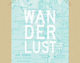 Printable Wanderlust 8 x 10 Travel Quote Travel Printable Wanderlust Quote Have Adventures See the World Map Explore Aqua Blue Wall Art