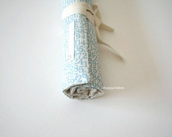 Back to school Pencil roll - blue numbers fabric - children gift, birthday gift