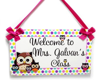 personalized welcome to class teacher door sign - owls themed classroom decor - welcome teacher class plaque gift - P343 Graduation Gift