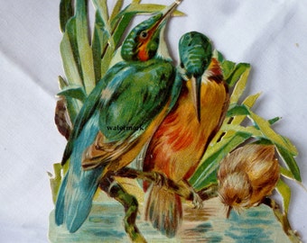Vintage Victorian die cut paper scrap, Hummingbirds On A Branch from ca. 1880 Crafts Paper Crafts