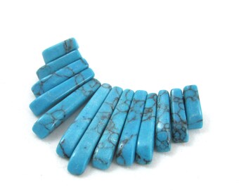 Focal, turquoise (imitation), blue-green, 26x10mm-29x12mm graduated mini-fan. Sold per 13-piece set.