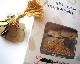 800 string tags . good for jewelry, etc. in display shows . estate sales . gold PVC . jewelry supplies . ships from Florida . teamvintageusa