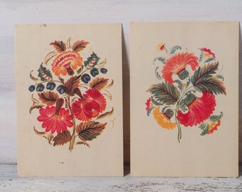 Vintage postcard 50th flowers art painting Soviet artist red orange Ukrainian art folk art
