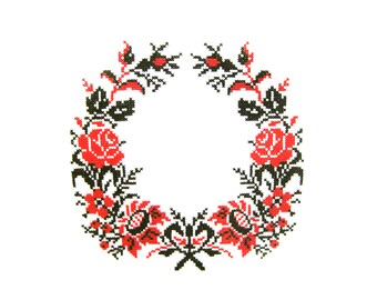 Completed Cross Stitch Traditional Ukrainian Embroidery Ornament - red and black