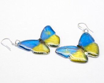 Support Ukraine earrings Blue yellow butterflies earrings Sterling silver hook Resin earrings Dangle Transparent earrings Ukrainian flag