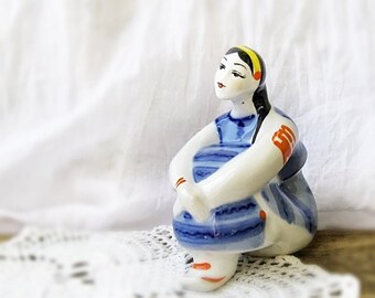 Ukrainian Girl Doll Brooch, Small Art Handmade Pin, Girl in national Ukrainian costume Polymer Clay, Ukrainian souvenir