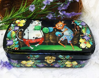 Hand painted Eyeglass Case, handmade wooden Sunglass case, box for glasses, Glasses case, hard sunglass case cat, spectacle case, for men