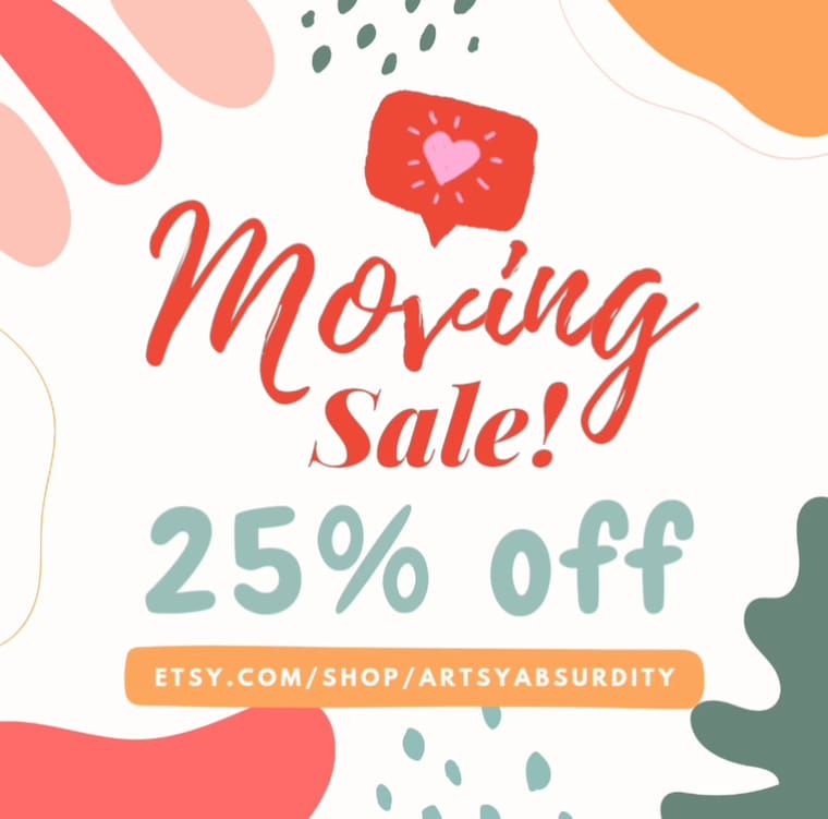 MOVING SALE!! Everything in my shop is 25% off to help clear inventory ahead of my move. *Excludes custom listings