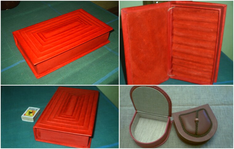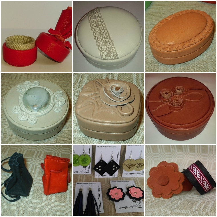 Preparavo scatole e accessori in pelle di diverse dimensioni (orecchini, bracciali, collane e sacchetti di pelle).