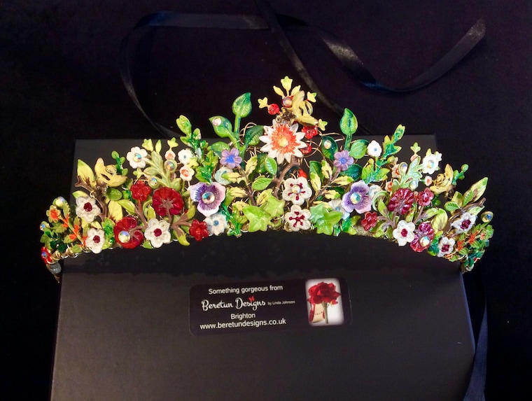 In 1990 and days before the Internet I opened my first shop in Onley, Northants selling my jewellery, at this time I also started to make my tiaras. Materials weren’t as readily available as they are these days and I had to trawl the yellow pages telephone directories to find wire manufacturers and little factories who could cut my metal flower and leaf shapes so I could bring the ideas to life, which had been rattling around my head for what felt like years. I found some good people and my unique designs became reality. I showed them at a local wedding show and suddenly I was inundated with orders and I took on my first assistant.