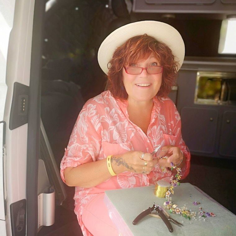 I didn’t stop though, now I’m back working on my own and I make my designs from my peaceful little studio on the Beach at Pevensey Bay or while we are exploring Europe in our campervan (my travelling workshop my husband calls it 😄) and I make most of my sales from my Etsy shop and the few in-person events I do, details of which can be found on my Facebook page.