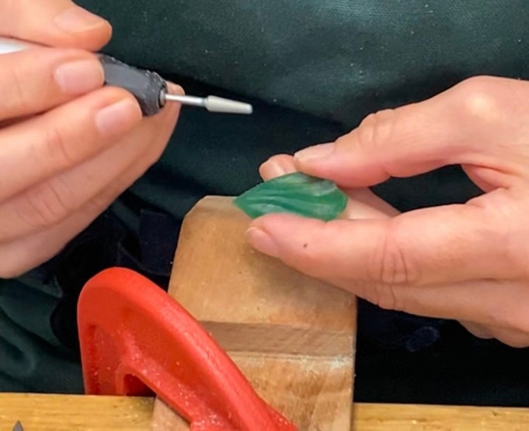 También me gusta trabajar con polvos de vidrio de colores y experimentar con la armonía de los distintos colores en las piezas. Utilizo un horno de alta temperatura para esmaltar.