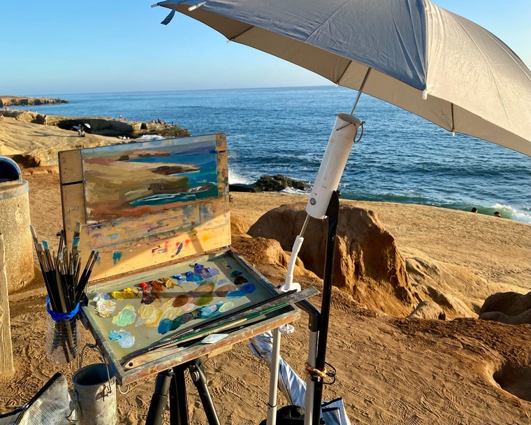 Estoy encantado de vivir y trabajar en el sur de California. Muchas de mis pinturas se centran en paisajes: la costa, las lagunas y las colinas de San Diego son mis temas favoritos. También disfruto componiendo pequeñas pinturas de naturaleza muerta. Recientemente he profundizado en la profundidad y vitalidad posible con las acuarelas. Colores alegres y brillantes y un estilo alla prima suelto definen mis pinturas.