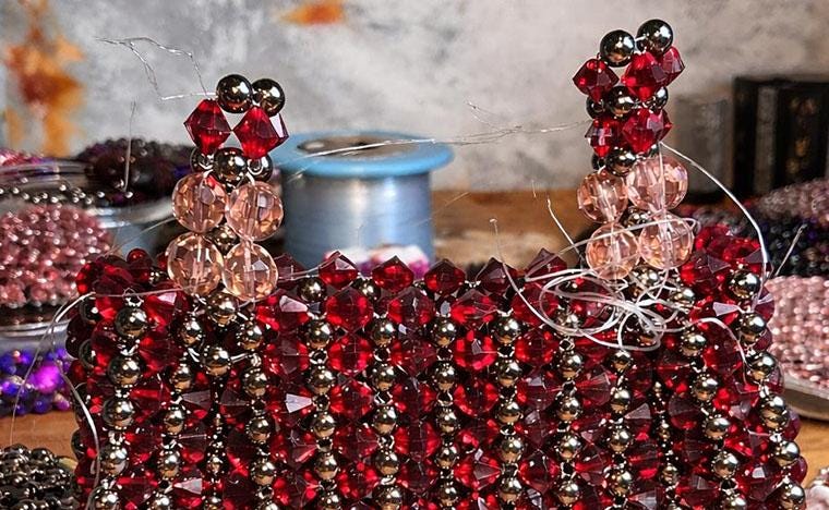 Beads are my true inspiration — I observe them, follow their natural combinations, and let them guide my hands until each bag takes shape, almost magically.