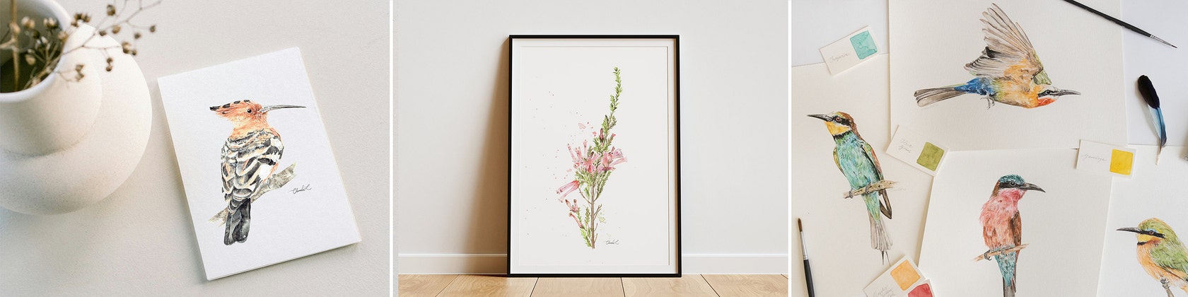 My name is Claudi Lourens and I am an artist and graphic designer from South Africa! My greatest inspiration comes when I'm out in nature. I love painting South Africa's birds and flowers! I work with watercolour, acrylic paint and digital methods. I use many of my artwork for stationery products that you can find in my shop! My style incorporates clean backgrounds with bright watercolor art, as well as black and white digitally sketched art.