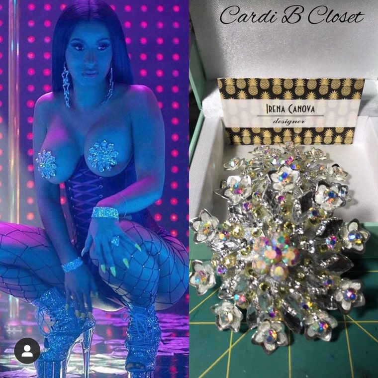 CardiB in Hustlers with pasties I made for her. 2019. -