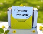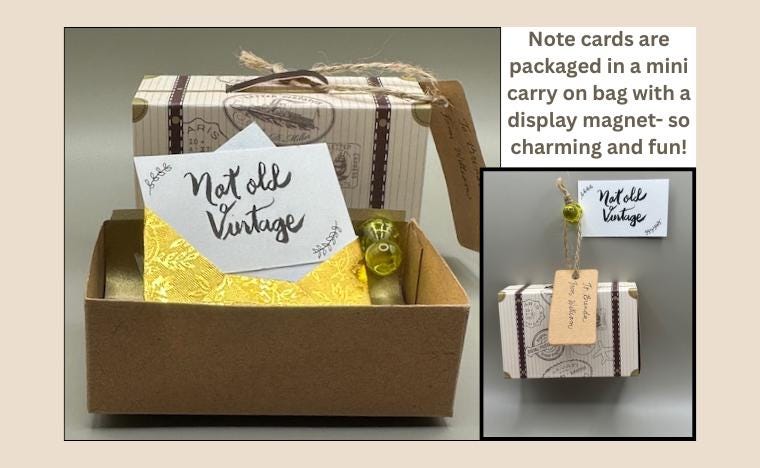 Note cards are packaged in a mini carry on bag with a magnet- so charming and fun! -