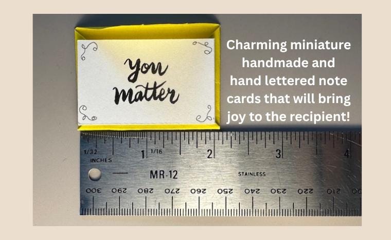 Charming miniature handmade and hand lettered note cards that will bring joy to the recipient! -