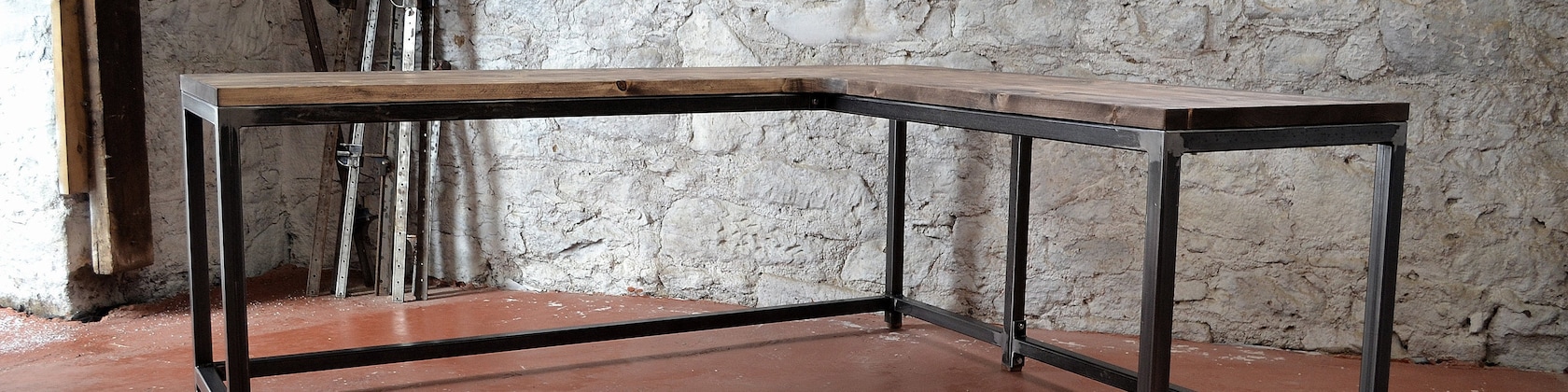 Reclaimed Wood Industrial Office Desk • Handmade PC Workstation • Custom Made in Scotland