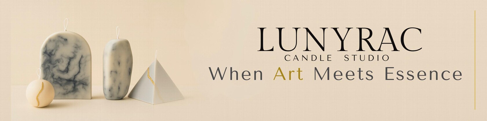 Founder of LUNYRAC Candle Studio. I handcraft sculptural soy candles in a neutral palette with marble textures and subtle kintsugi gold accents. Small-batch, gift-ready, and customized for events.