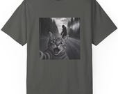 5 out of 5 starsTwo things my hubby loves...Cats & Bigfoot. Fast shipping & chat response but best part was the print was perfect - it's really smoothed on the shirt. I ordered another.