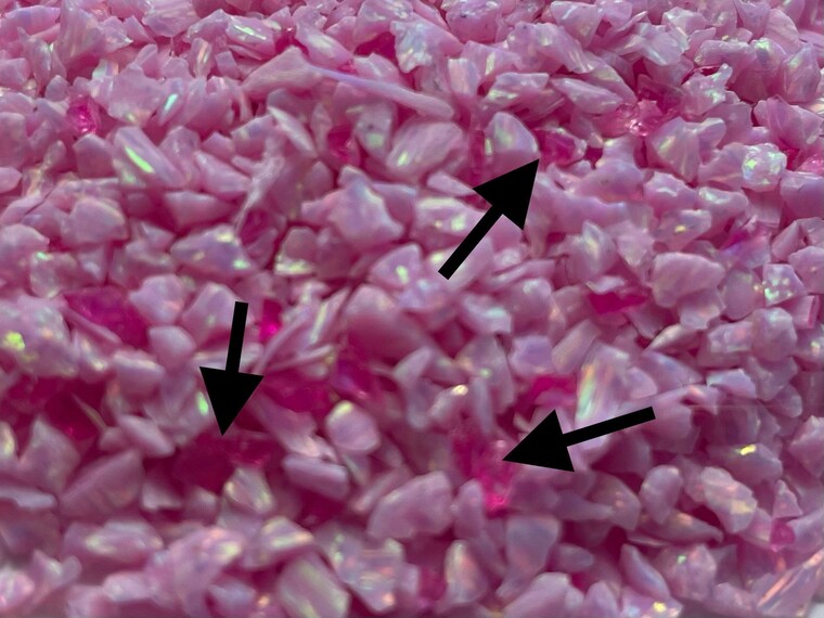 Same light pink Bello Opal with the Non-Opal chips removed. %100 of my products have these chips removed. Totally Absent -