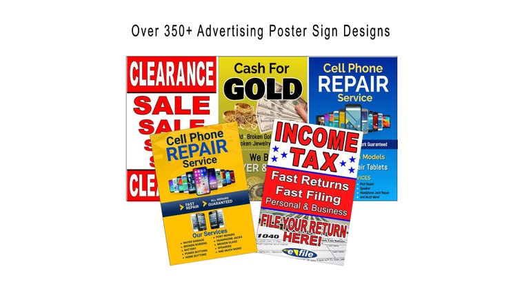 Poster Advertising signs we have over 300 pre-designed posters available or we can custom design for you No Charge. -