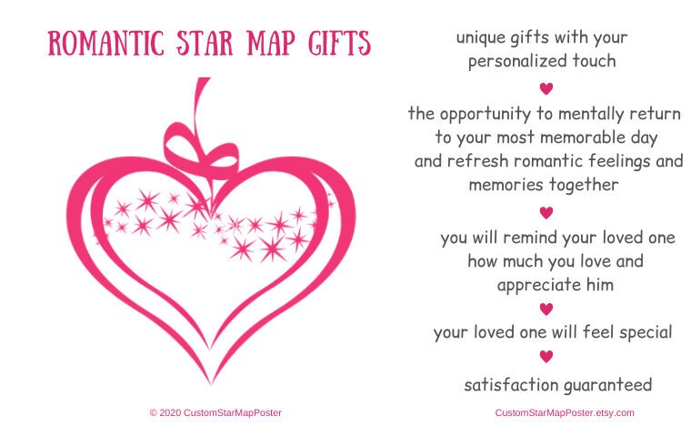 The custom star map by date and location is a great opportunity to remember the past and together make plans for the future. This is an unique and very romantic gift that would make your loved one feel special! This awesome star map gift remind your loved one how much you love and appreciate him 💕!!!