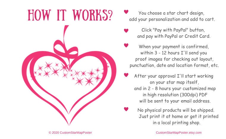 P.S. To make your personalized STAR MAP accurate I use special planetarium application. So, you can be sure that you'll get a real sky chart.