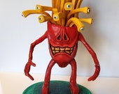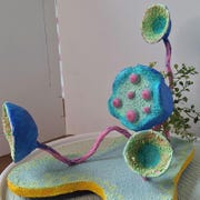 Mis obras de arte se elaboran principalmente con diversos tipos de arcilla, papel maché, alambre y pegamento caliente. También utilizo ocasionalmente objetos encontrados y artículos reciclados, como tapas de botellas y recipientes de comida limpios. Todas las esculturas están pintadas con pintura acrílica y mucho cariño. No exponer a la luz solar directa.