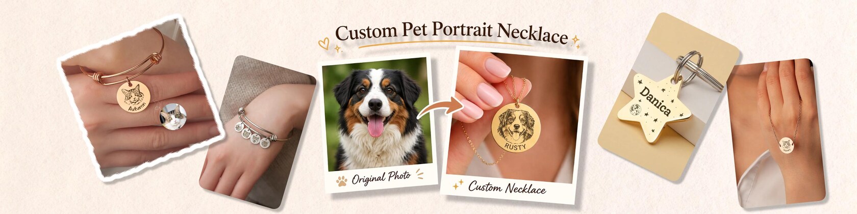 Fondos DL / Collares personalizados con retratos de mascotas a partir de tus fotos favoritas