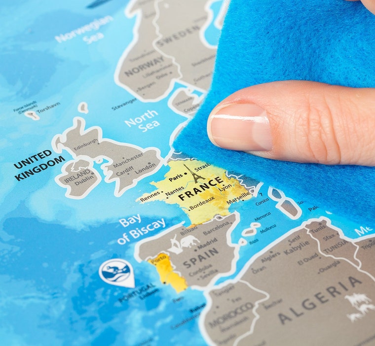 Wipe your map clean with the included felt cloth. The soft material will ensure that you do not scratch the map print. -