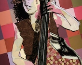 Como me encanta el arte y me encanta tocar la batería en un trío de jazz, parecía natural hacer arte sobre la música de jazz. Es fascinante contemplar cómo la belleza puede entrar en los ojos y los oídos de manera tan diferente, así que decidí intentar mostrar cómo se "ve" el jazz, en otras palabras, MOSTRAR cómo suena. El jazz tiene su propia sensación, que es muy vibrante, colorida y, a menudo, angular. Es muy divertido escuchar una emocionante melodía de jazz y pensar: "OK, ¿cómo se vería esto si pudiéramos verlo?" Ese es el espíritu detrás de mi obra de arte.