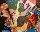 Much of what you see on my Etsy page is made from fabrics-- I cut fabric and piece it together to make a collage, choosing colors and patterns that have just the right feel for the piece.
