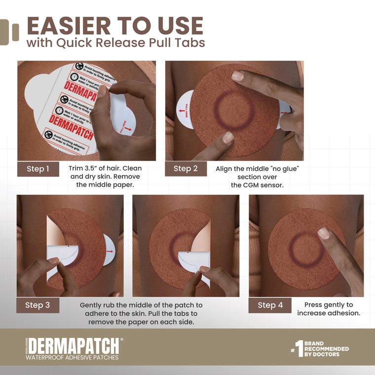 Apply DermaPatch CGM Adhesive Covers with one hand in seconds -