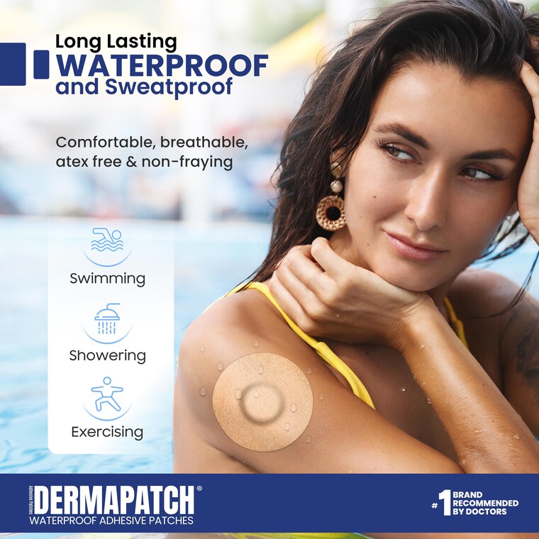 DermaPatch Freestyle Libre 3 and 3 Plus, Dexcom G6/G7 and Stelo covers are Waterproof and SweatProof.