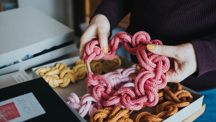 < KOKKET > Schmuck ist viel mehr als nur ein schmückendes Beiwerk oder Accessoire. Er ist ein gesellschaftliches Statement des Umwelt- und Konsumbewusstseins. Jedes Produkt ist ein Handgemachtes Unikat. Bei der Auswahl der Materialien wird hoher Wert auf Naturstoffe wie Baumwolle, Wolle, Seide, Hanf und Viskose gelegt. Farben, verschiedene Naturfasern und Strukturen sind die wichtigsten Elemente dieser Kollektionen.