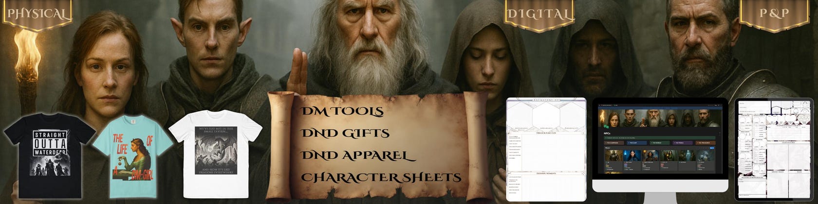 This shop is that craft in public. I started with character sheets and pen and paper tools for DMs. Then I built the thing I had wanted for years, a Notion Campaign Builder & Tracker. I designed it to solve the problems that appear in the middle of a long arc, when threads tangle and the story still needs to sing.