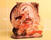 5 out of 5 starsThis is a neat little standee, tho was expecting something a little taller but after the absolute disaster that was shipping to my house (the mail system accidentally put my package on the wrong truck so it arrived late) I could care less about that. At least I have room for it. The standee quality is great, managed to arrive safely though the box was damaged, I'm just glad the merch isn't broken. I ordered him and Anaxa and the free keychain was also a nice surprise!