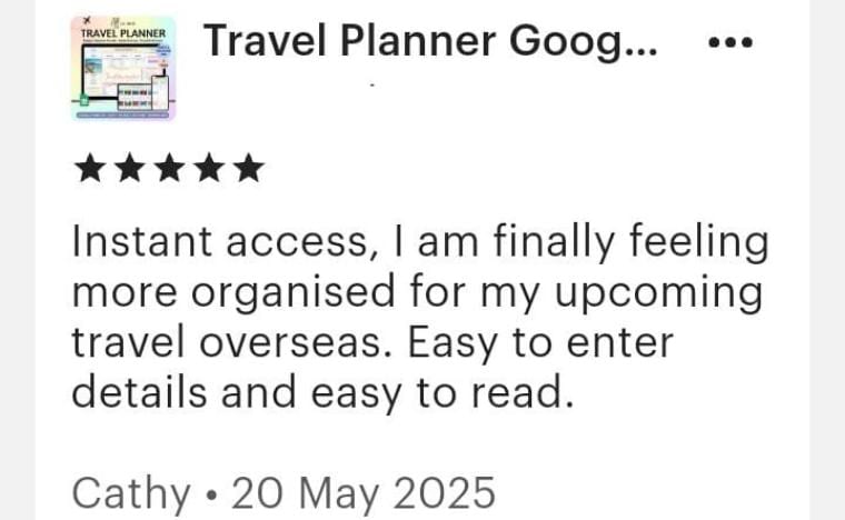 Loved by happy customers ⭐⭐⭐⭐⭐ Praised for being easy to use, well-organized, and practical for travel planning. -