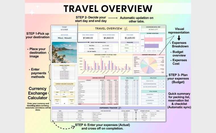 All your trip details in one dashboard. Track budget, expenses, progress with automatic updates & visual summary. ✈️
