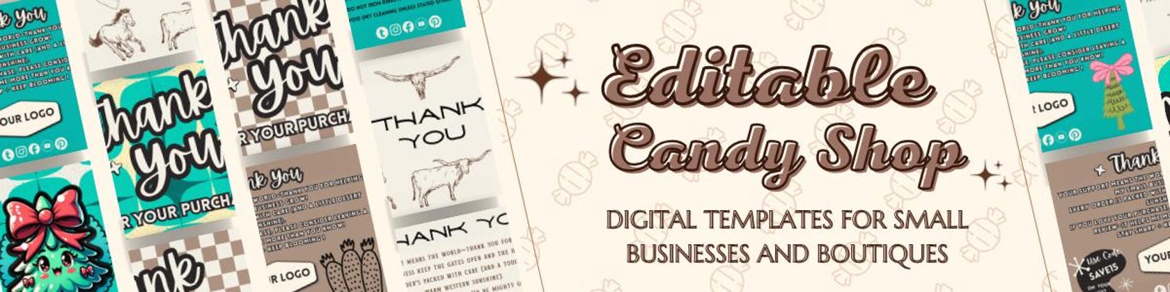 That’s why I started Editable Candy Shop — a sweet little corner of the internet where business owners, makers, and creatives can find editable Canva templates that make branding simple, affordable, and stress-free.