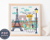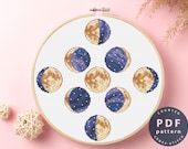 All printed patterns consist of detailed colored schemes, blocks, and cross-stitch charts with symbols. -