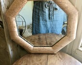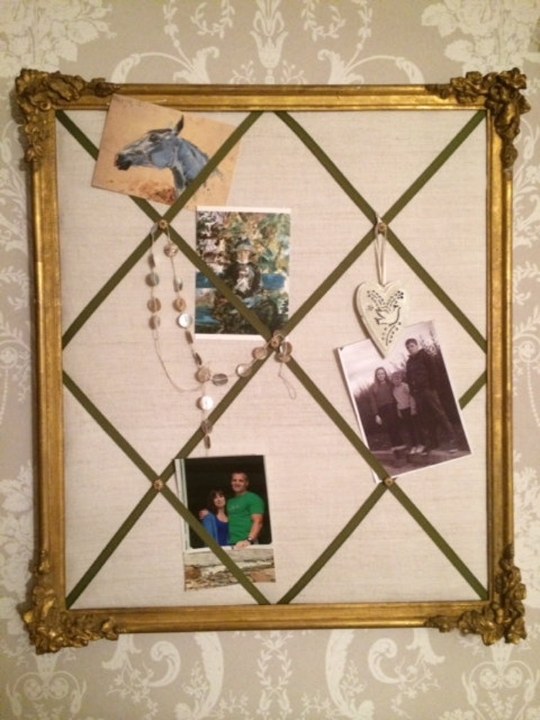 A little project! Old gilded frame upcycled into a linen-backed notice board, complete with antique gold buttons. -