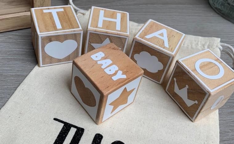 Les petits cubes avec le prénom de votre enfants, une version avec les info de naissance disponible -
