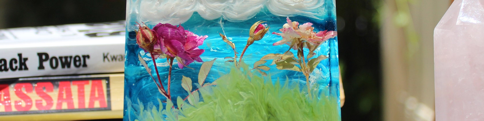 I happen to come across Josie Lewis's petri creations and was inspired to finally put my unusually large collection of pressed flowers to use! Her work has inspired me to combine the art of resin + alcohol ink with the dried flower art community. It has taken a lot of trial and error and I am no expert but, it makes me happy. Sometimes it can feel like nothing will make me happy but, I sit down and design pieces using the flowers I used as an outlet to create works of art that I want to share with all of you.