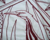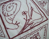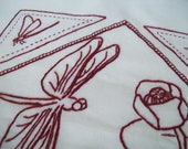 My inspiration is nature and my favourite part of the process is drawing and creating the initial design. Also fun: keeping an open mind at the fabric store and considering non-traditional fabrics for my embroidery and crafts, keeping an eye open at antiques barns for old needle work books, and then trying different stitches.