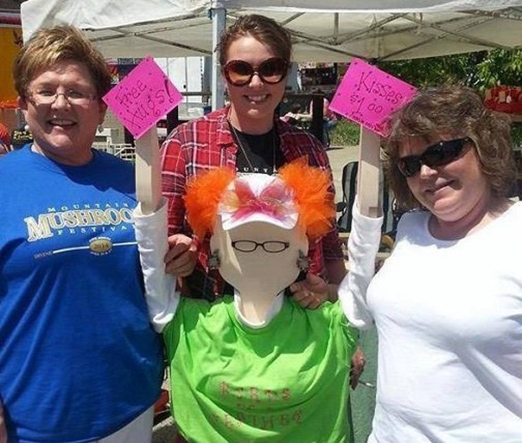 Free Hugs & Kisses for $1! Celebrating the sunshine at the Mountain Mushroom Festival. -